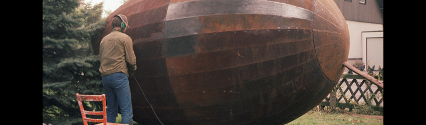 Transport-Aktion einer Eisenskulptur nach dem Vorbild von Fat Man