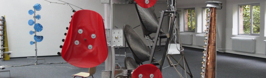 Klang und Bewegung, Installation im Freien mit zwei Metallhörnern