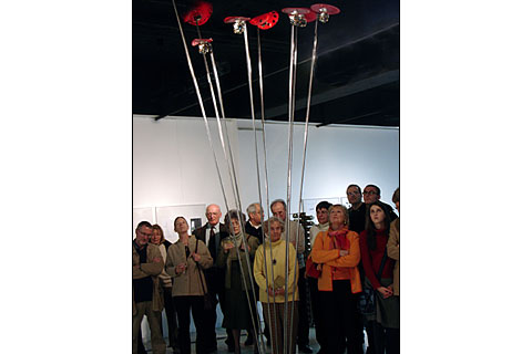 clamorous sound. The eight poles stand on a carrier and the foil,