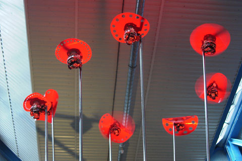 of discs. Motors are mounted on perforated synthetic foil stretched