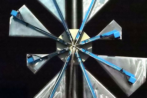 Eight bells are set in a group and stand on a tribrach. Magnets from copiers strike