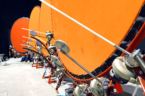 Attached to each drum are sixteen hammers each of which are fitted with a