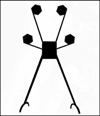 sechseckigen Edelstahl-Chromblechen. Sie sind an ein Gestell mit zwei Trägerarmen montiert.