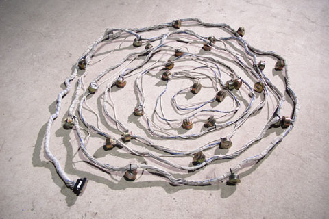 Connected by a cable electromagnetic signal generators are mounted at intervals of