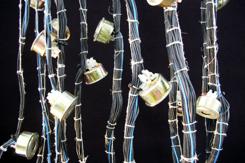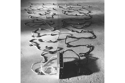 either inconspicuously in the room or he constructs with them objects on carriers.