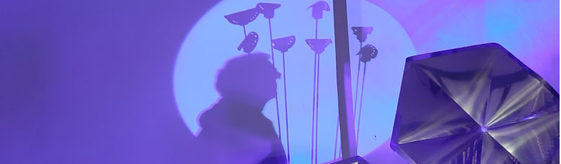 Materialien: Stahlstäbe, 8 Motoren, Folien Gewicht: 20 kg Abmessungen: 330cm (Höhe) x 160cm (Breite)