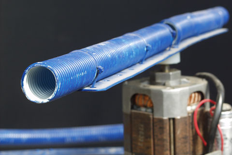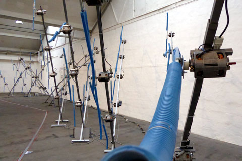 Schläger uses internally fluted tubes rotated by motors. The action of rotating causes air to