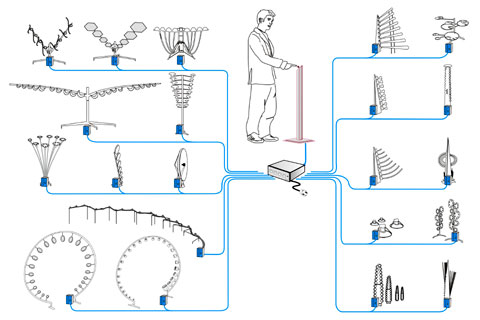 Installation. Am Selektor können die Besucher Kompositionen für ein Arrangement von