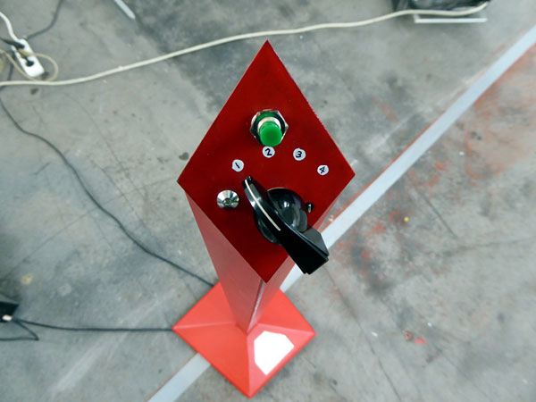 auf einer kleinen Säule und einer Steuer-Box. Die Besucher