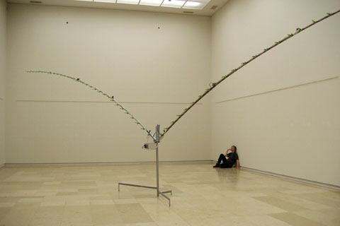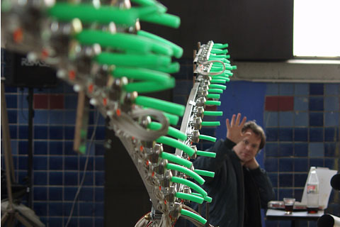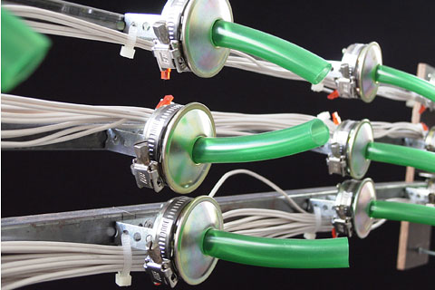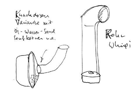 Metal membranes in small metal boxes are vibrated. On the arms, which can have a