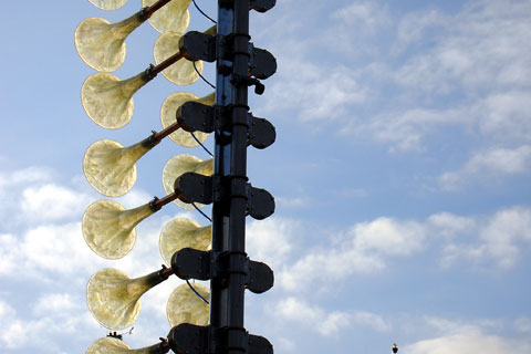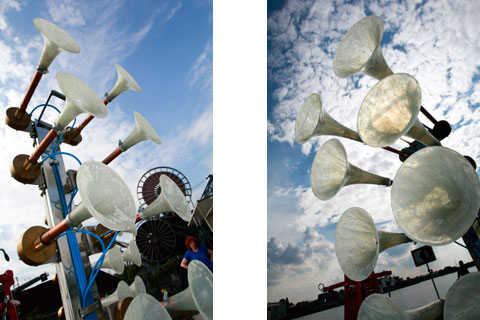 Eine Horngruppe besteht aus 64 Hörnern. Das sind kleine Schiffshörner, die für die tonale Skala
