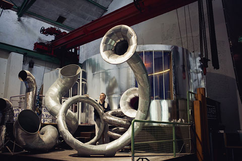 electrical pneumatic sound generator. A specially constructed MIDI-control allows each Helix Horn