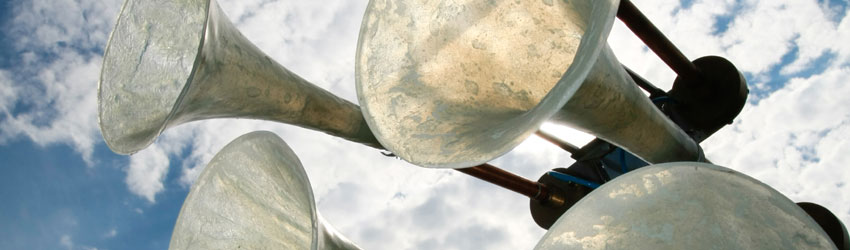 small, modified ship’s horns. 32 horns have glass fiber and synthetic resin bells whose