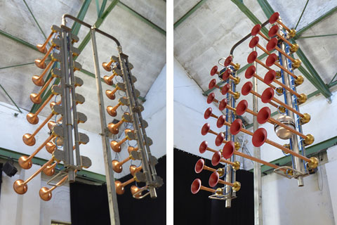 A horn group consists of 64 horns, small, modified ship’s horns. 32 horns have copper