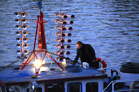 impressive exchange between a ship’s horn and the horn of a distant freight train."